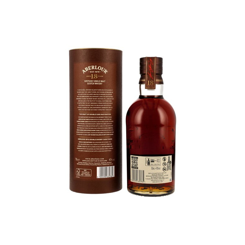 Dieser exquisite 18 Jahre alte Whisky wurde in speziell ausgewählten First Fill Oloroso-Sherry Fässern veredelt, die für ihre saftigen Rosinen- und Lakritzaromen bekannt sind, die dann mit PX-Sherry-Fässern kombiniert wurden, die ihm eine intensive, sirupartige Süsse verliehen.