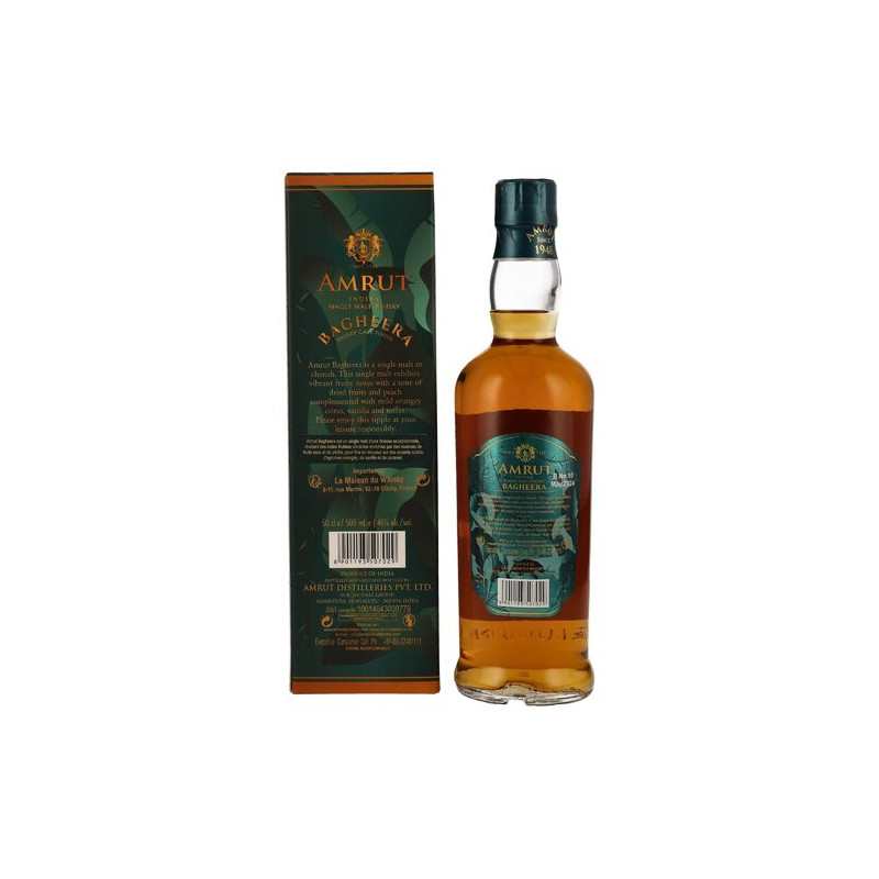 Aus 99 Prozent ungetorfter Gerste und einem Prozent Torfmalz wird Amrut Bagheera hergestellt. Zuvor als limitierte Edition verfügbar, erweitert der Single Malt ab jetzt dauerhaft die Range. Der geschmeidige „schwarze Panther“, wie der Whisky aus Hindu übersetzt heißt, wird in Sherryfässern veredelt. Seine aromatische und genussvolle Palette strotzt vor Natürlichkeit und Großzügigkeit: Frische Früchte und Nüsse sowie weiche Vanille und cremiges Karamell verschmelzen elegant mit zarten Rauchfahnen.