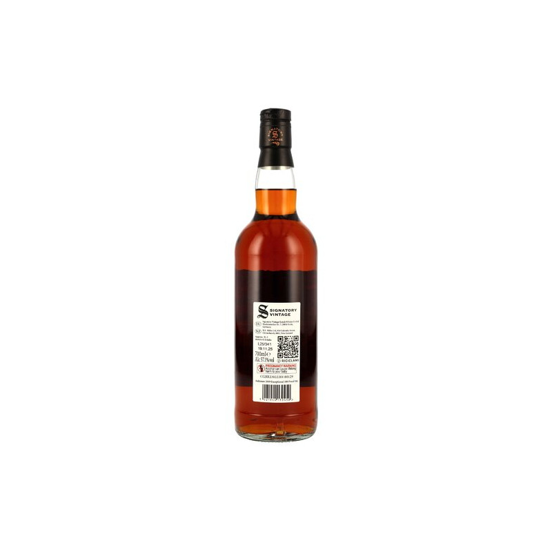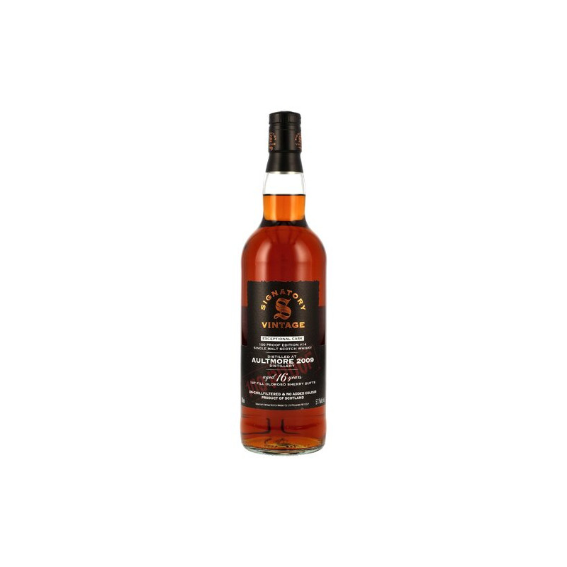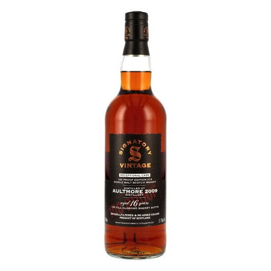 Aus der 1896 gegründeten Aultmore Brennerei stammt diese Abfüllung von Signatory. Jahrgangswhiskys aus einer geschlossenen Brennerei, Single Malts aus seltenen Einzelfässern – für seine Abfüllungen spürt Andrew Symington erlesene Scotch Whiskys auf. Mehr als 10.000 Hogsheads, Butts und Co. lagern in den Hallen des unabhängigen Bottlers. Die 100 Proof Edition schließt seit Anfang des Jahres eine Lücke im Signatory-Sortiment. Die Single Malts der Reihe werden mit 57,1% vol. abgefüllt, dem Mindestgehalt, ab dem mit Alkohol getränktes Schießpulver entzündet werden kann. Hohe Prozente treffen dabei auf niedrige Preise. Mit dem Aultmore 2009 ist ein Single Malt dabei, der aufgrund der starken Nachfrage für Blends lange als Underdog galt. Der Aultmore 2009/2025 ist günstig und auch die Gelegenheit für Genießer, die in herrlicher Abgeschiedenheit gelegenen Destillerie kennenzulernen. Der Grund? Die Aultmore Core Range wurde in Deutschland vom Markt genommen.
