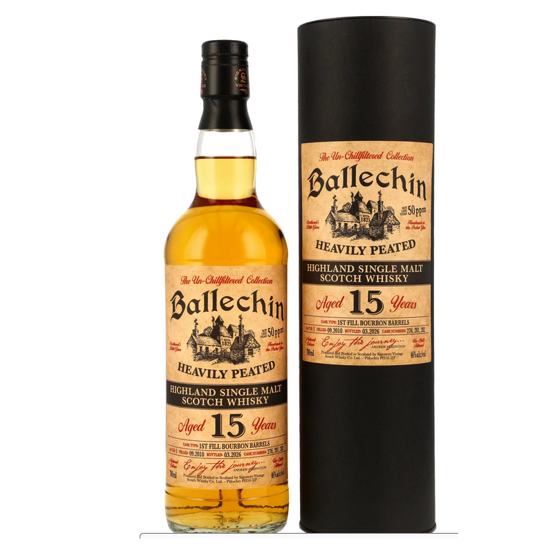 Im September 2010 in der traditionsreichen Destillerie Edradour gebrannt, repräsentiert dieser Ballechin die rauchige Seite des „Little Gem“ der Highlands. Der renommierte unabhängige Abfüller Signatory Vintage wählte für diese Edition der „Un-chillfiltered Collection“ drei spezifische 1st Fill Bourbon Barrels aus, in denen der Single Malt bis zum März 2026 reifen durfte. Durch den konsequenten Verzicht auf Kältefiltration und Farbstoffe bleibt die viskose Textur und die natürliche Bernsteinfarbe erhalten, was den ursprünglichen, handwerklichen Anspruch dieser limitierten Auswahl unterstreicht.