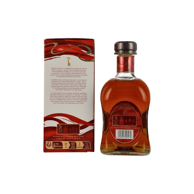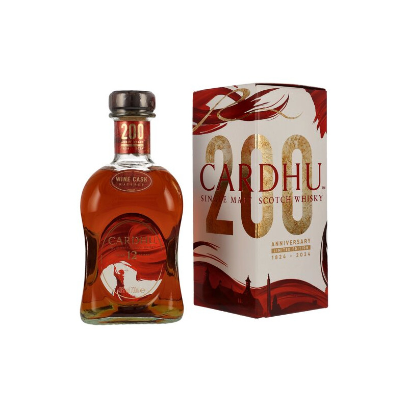 Cardhu 12 Years 200th Anniversary Edition ist ein bsonderer Single Malt aus der Cardhu-Destillerie und feiert zwei Jahrhunderte Bestand der Brennerei. Dieser Single Malt Scotch Whisky aus der schottischen Speyside-Region verkörpert das reiche Erbe und die Kunst der Destillation. Diese Sonderedition würdigt nicht nur einen wichtigen Meilenstein, sondern bietet Whisky-Liebhabern und Sammlern auch ein einzigartiges und unvergessliches Geschmackserlebnis.