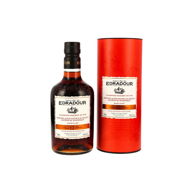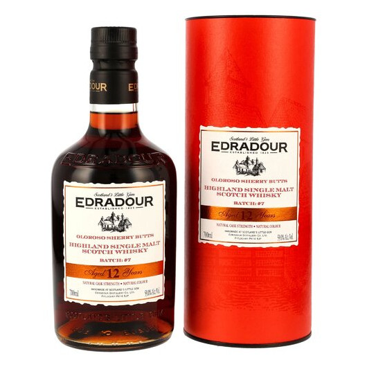 Der Edradour 12 Jahre lagert vollständig in First sowie Second Fill Oloroso Sherry Butts. Aus insgesamt zehn Fässern vermählt, füllte Batch 7 des Highlanders 6.402 Flaschen – fassstark und weder kühlfiltriert noch gefärbt. Der Effekt? Sein von dunkler Süße und nussiger Würze geprägtes Geschmacksprofil entfaltet sich ungehemmt.