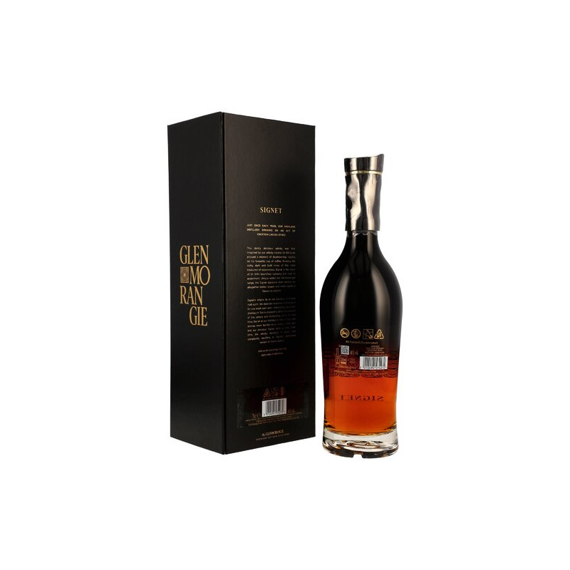 Die endgültige Mischung kombiniert süße Whiskys, die in ehemaligen Sherryfässern extra gereift sind, würzige und toastige Whiskys aus verkohlten Fässern aus neuer Eiche und – was Signet seine charakteristische Tiefe verleiht – Whiskys aus den ältesten Glenmorangie-Beständen.
