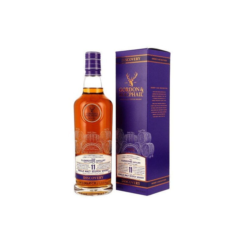 Aus der 1878 gegründeten Glenrothes Brennerei stammt diese Abfüllung von Gordon & MacPhail aus der Discovery Serie. Die Discovery-Reihe ist der perfekte Einstieg in das Portfolio und bietet Ihnen eine Einführung in die Welt der Single Malt Whiskys einiger der renommiertesten schottischen Destillerien. Jede Abfüllung zeichnet sich durch ein markantes Geschmacksprofil aus. Durch die Lagerung in ehemaligen Sherryfässern erlangt dieser Malt in 11 Jahren eine außergewöhnliche weiche Struktur mit Mandel- und Fruchtaromen. Abgefüllt wird er mit 43% Trinkstärke, er wird weder gefärbt noch kühlfiltriert.