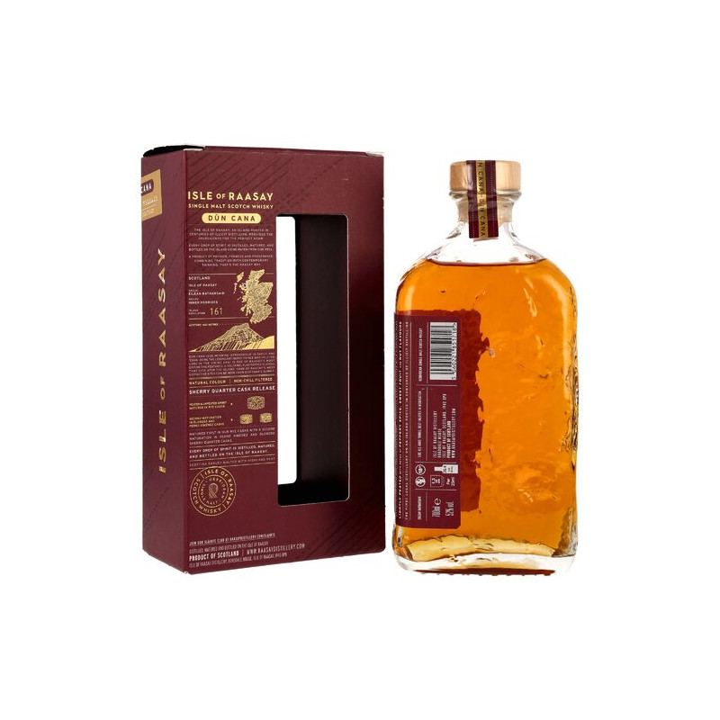 Die kleine Isle of Raasay ist der Dreh- und Angelpunkt für den nach ihr benannten Single Malt. Sie liefert natürliche Zutaten, eine ganze Inselgemeinde, die bei der Herstellung Hand anlegt, und ein atemberaubendes Panorama. Dieses diente als Inspirationsquelle – sowohl für die maßgefertigte Flasche der Hebriden-Whisky als auch für das limitierte Sherry Quarter Cask Release, den Isle of Raasay Dùn Cana.