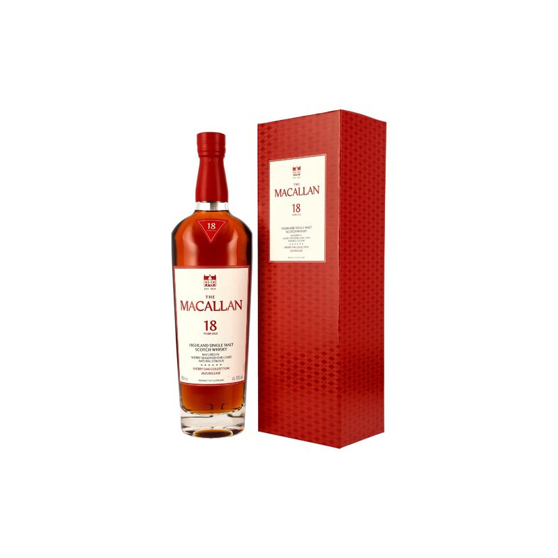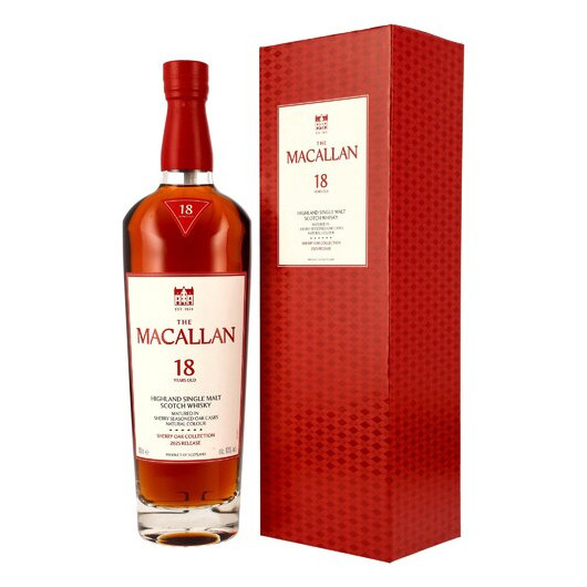 Der Macallan Sherry Oak 18 Jahre gehört zur Sherry Oak Produktreihe, die eine Kollektion von Single Malt Whiskys umfasst, die ausschließlich in handverlesenen Sherry-Eichenfässern aus Jerez heranreifen, was für ihre besondere Reichhaltigkeit und Komplexität sorgt. Ein vollmundiger Geschmack mit reifen Eichentönen, Ingwer- und Rosinenaromen wird durch eine natürliche helle Mahagonifarbe vervollständigt.