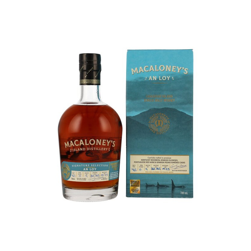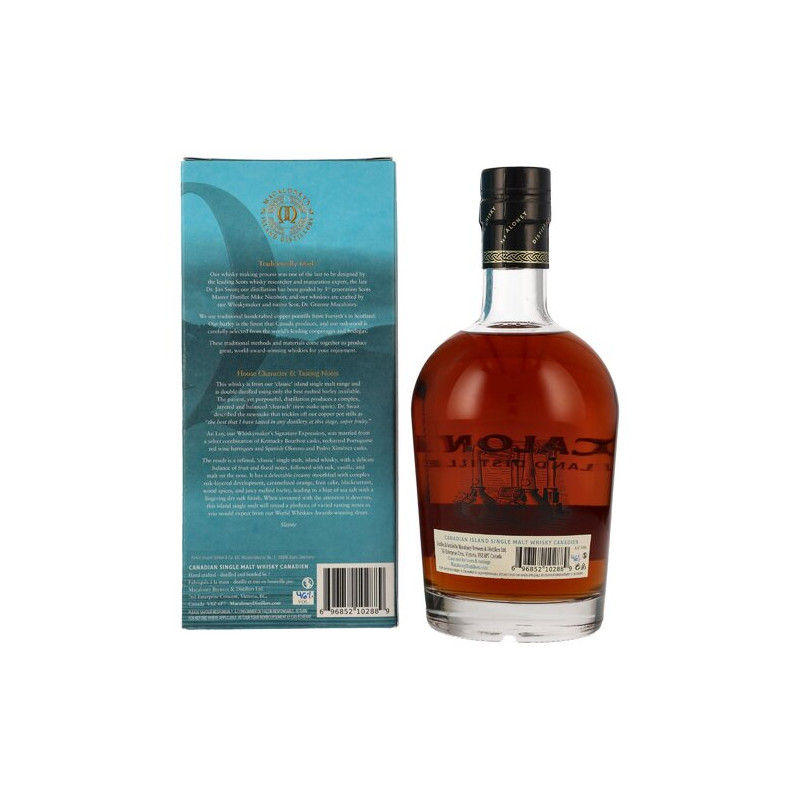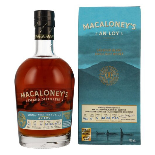 Aus kanadischer Premium-Gerste entstehen in Forsyths Pot Stills fruchtige Destillate, die im Inselklima reifen und mehrfach goldprämiert sind. Macaloney's An Loy etwa ist der beste Canadian Single Malt der World Whiskies Awards 2022. Der komplexe Dram aus Kentucky Bourbon Casks, Portuguese Red Wine Barriques, Oloroso und Pedro Ximénez Sherry Casks ist fruchtig und leicht maritim.