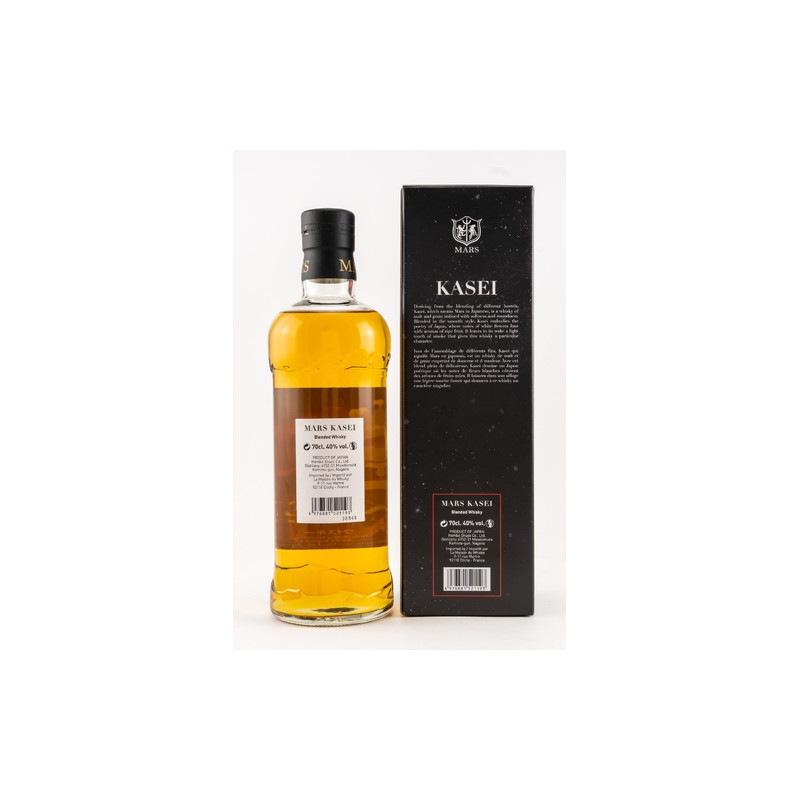 „Kasei“ – Japanisch für „Mars“ – ist ein Blend aus japanischem Malt und Grain Whisky. Der fruchtig-süße Whisky besticht mit Aromen von Honig, grünen Äpfel und weißen Trauben und ist im Nachklang leicht rauchig.