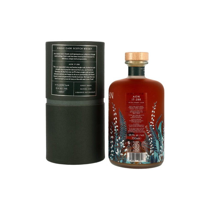 Neue Wege beschreitet Nc’nean zudem exklusiv für den deutschen Markt. Das Nc’nean Aon – PX Sherry Single Cask ist die erste Einzelfassabfüllung der kleinen Highland-Brennerei aus einem Pedro-Ximénez-Sherryfass. Aufgrund der großen Nachfrage aus Deutschland in Fassstärke abgefüllt, entfaltet der siebenjährige Single Malt Noten von Waldfrüchten, Rosinenkuchen, Lakritz und Buttercreme.