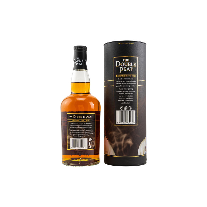 Speck, Paprika, Meeresbrise, Torfrauch – ein toller Blend von Angus Dundee, u.a. Inhaber der Glencadam Brennerei, bringt alles mit, was Fans rauchiger Whiskys das Wasser im Munde zusammenlaufen lässt. Double Peat ist ein Blended Malt, der zwei Whiskyregionen aufs Rauchigste zusammenführt. Der Scotch Whisky in idealer Trinkstärke vermählt auf einzigartige Weise getorfte Single Malts von der sturmgepeitschten Hebrideninsel Islay mit rauchigen Single Malts aus der Speyside – eine Seltenheit. Die maritime Rauchnote des Islay-Anteils ergänzt so harmonisch den süßen, kräutrigen Rauch der Speyside-Malts.