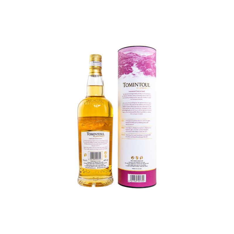 Master Distiller Robert Fleming kreierte diese limitierte Abfüllung, indem er speziell ausgewählten Tomintoul Whisky aus amerikanischen Ex-Bourbon-Eichenfässern auswählte, die anschließend in handverlesenen Pinot-Noir-Weinfässern aus Burgund, Frankreich, vermählt und veredelt wurden.